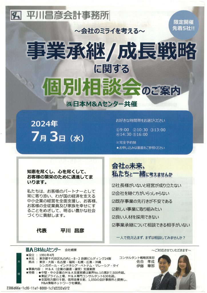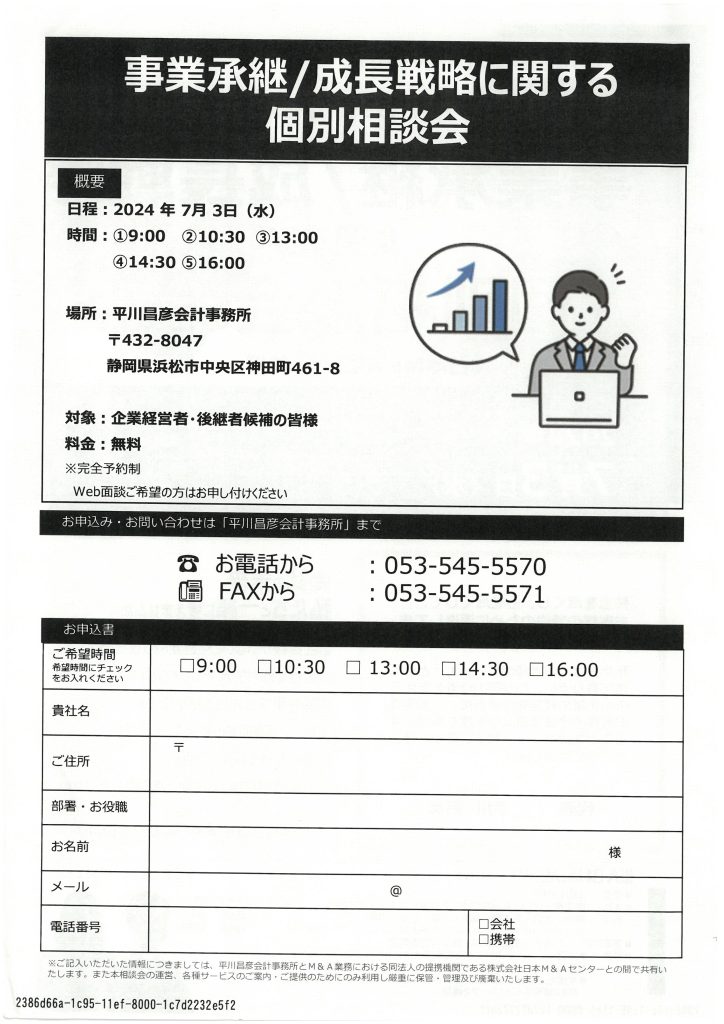 事業承継/成長戦略に関する個別相談会のご案内